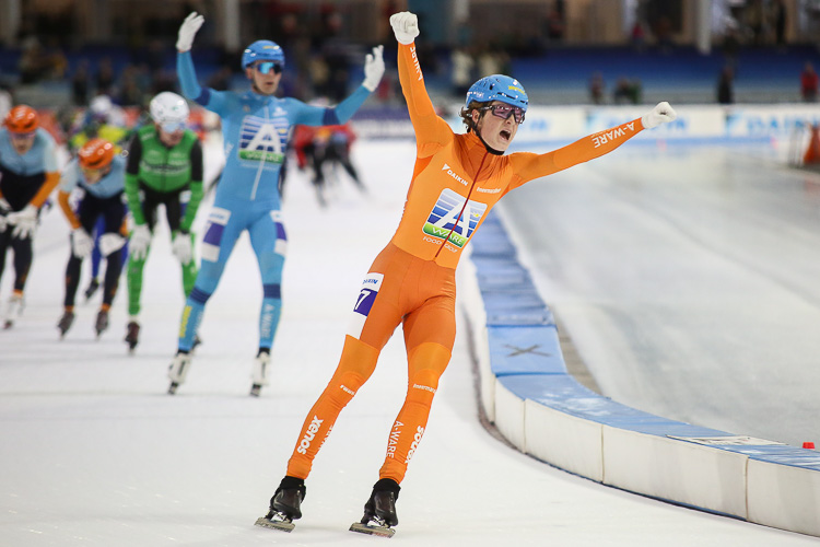 Chris de Velde (Royal A-ware) heeft in Heerenveen de derde cupwedstrijd bij de beloftenmannen op zijn naam geschreven. Net als bij de beloftenvrouwen eindigde het bij de beloftenmannen in een één-tweetje met ploeggenoot Kevin van der Horst (Royal A-ware) op de tweede plaats. Van der Horst, die na zijn eindoverwinning in cup vorig seizoen ook dit jaar weer op het tweede niveau actief is, neutraliseerde eigenhandig in de slotronde een solo-aanval van Jelle Koeleman (Douma Staal) en zag vervolgens zijn jonge ploeggenoot het afmaken. De Fransman Doucelin Pedicone (Douma Staal) was goed voor de derde plaats.