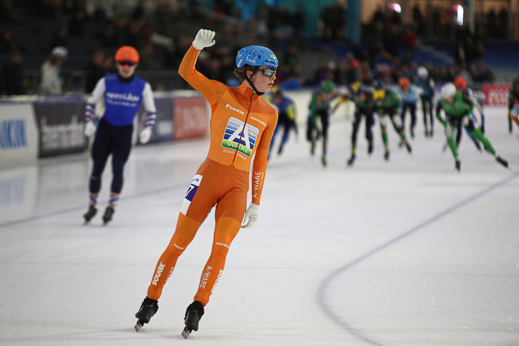 In Heerenveen heeft Chris de Velde (Royal A-ware) voor de zesde keer dit seizoen een beloftenmarathon gewonnen. Net als de vorige keer was de jonge Fries de snelste in de massasprint. Joël Haasjes (Arbeidsrecht de Graaf) bleef nog het dichtst bij De Velde en staat met alleen nog de cupfinale te gaan ook tweede in het klassement waar hij al op 32,4 punten van de leider volgt. De Velde gaat zo dus met een riante voorsprong op weg naar de cupfinale over drie weken in Groningen. Gastrijder Sem Spruit eindigde in Thialf vandaag als derde in de sprint.