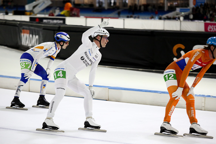 In Heerenveen heeft Jorian ten Cate (Reggeborgh) de twaalfde etappe in de Daikin Marathon Cup gewonnen. In een matte wedstrijd waar Mats Stoltenborg (De Haan Westerhoff) er meermaals nog iets van probeerde te maken werd het peloton te veel gecontroleerd en maakte Ten Cate het voorbereidende werk van zijn ploeg af. Bij het luiden van de bel leek Sjoerd den Hertog (Royal A-ware) het best de sprint te beginnen maar hij kwam in leidende positie in de voorlaatste bocht ten val. Ten Cate klopte op de streep Daan Gelling (Royal A-ware) en Luc ter Haar (De Haan Westerhoff).
