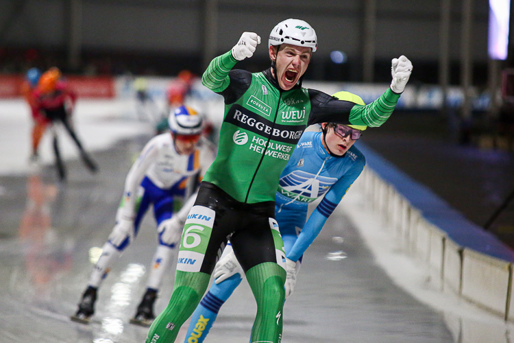 Bart Hoolwerf (Reggeborgh) heeft in Breda de voorlaatste wedstrijd in de Daikin Marathon Cup gewonnen. Op de streep bejubelde de man, die afgelopen jaren steevast met Jorrit Bergsma het Nederlandse duo op de massastart vormde maar voor de spelen in Milaan gepasseerd werd, zijn zege met een brul. Terwijl zijn wereldbekerpartner olympisch goud behaalde rekende Hoolwerf 1000 kilometer van de Italiaanse Olympus in de massasprint af met belofte Chris de Velde (Royal A-ware), die als doorstroomrijder het podium haalde, en Luc ter Haar (De Haan Westerhoff). Klassemenstleider Daan Gelling (Royal A-ware) haalde op de dertiende plaats voldoende punten om de eindzege in de cup veilig te stellen.
